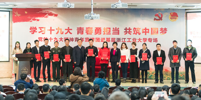 12月7日下午,党的十九大精神青年宣讲团进基层members28365-365专场活动在我校屏峰校区举行。团省委副书记王慧琳,纪委书记顾玮出席活动。党的十九大精神青年宣讲团成员、各学院团委书记、青年马克思主义学校成员、团支书代表和团员青年代表等300余人共同参与本次活动。 &nb...