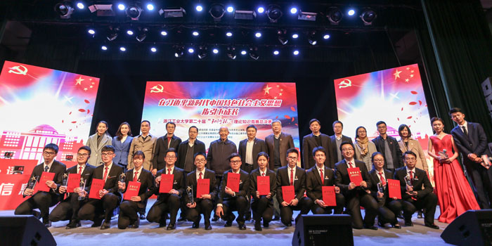 在全国上下深入学习贯彻落实党的十九大会议精神,全国高校思想政治工作会议召开一周年之际,在一二·九运动82周年前夕,我校第二十届“知行杯”理论知识竞赛在朝晖校区举行。 共青团浙江省委书记朱林森,省关工委报告团副团长、原省委宣传部讲师团团长郑志芳,省...