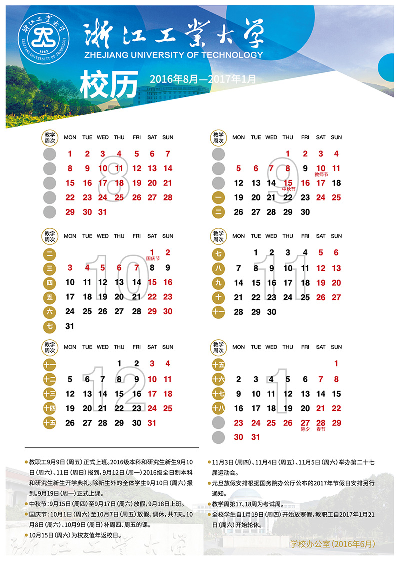 经校长办公会议研究决定,2016/2017学年校历安排如下: